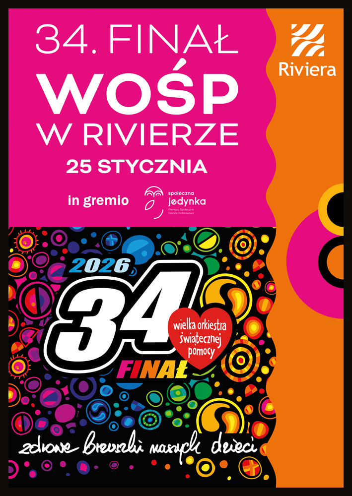 W niedzielę handlową, 25 stycznia, Centrum Riviera po raz kolejny włączy się w organizację już 34. Finału Wielkiej Orkiestry Świątecznej Pomocy. Tego dnia odwiedzający galerię będą mogli wziąć udział w licznych atrakcjach przygotowanych na rzecz tegorocznego celu zbiórki, które zwieńczy uroczysty finał o godzinie 20.00.