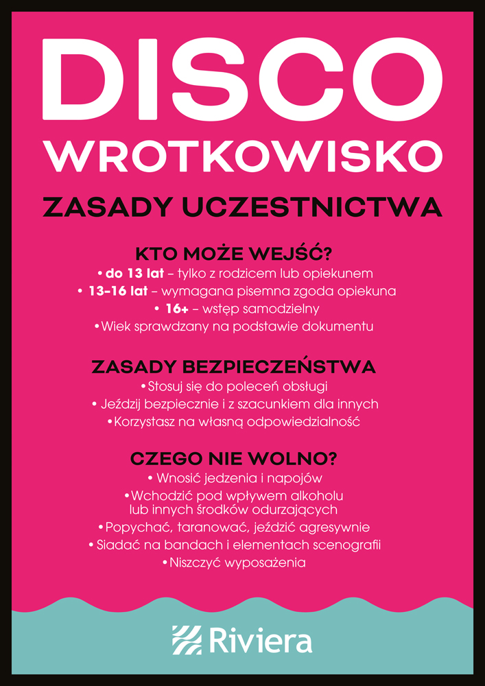 W czasie ferii zimowych, od 19 do 31 stycznia, w godzinach 11:00–20:00, Plac Centralny w Centrum Riviera staje się przestrzenią wrotkarską, zaaranżowaną w klimacie disco. Do dyspozycji uczestników jest tor wrotkarski oraz wypożyczalnia wrotek i kasków dla dzieci i dorosłych. Nad przebiegiem wydarzenia czuwa instruktor, który pomoże osobom początkującym opanować podstawy jazdy i zadba o komfort uczestników. Udział w wydarzeniu jest bezpłatny.